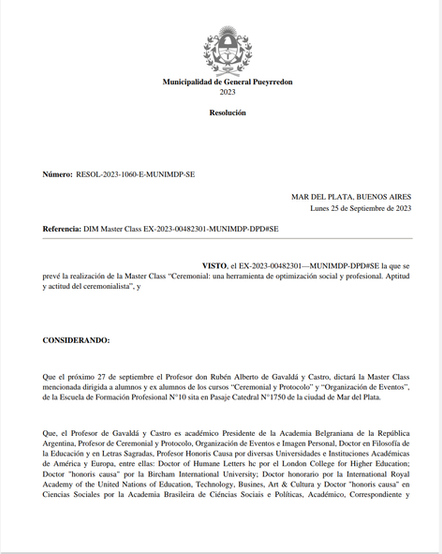 "Ceremonial: única herramienta de optimización social y profesional. Aptitud y actitud del ceremonialista" fue la MasterClass impartida por el Prof. Gavaldá y Castro el pasado 27 de septiembre de 2023.